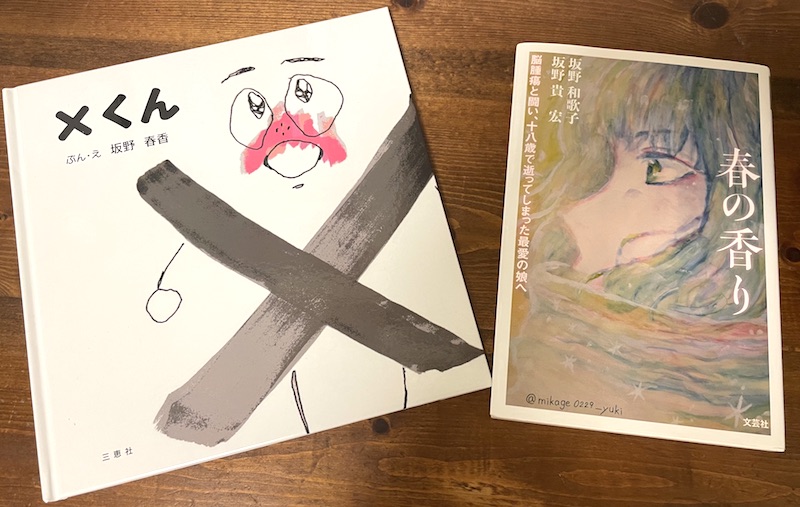可愛らしい×くんの挿絵は、作者の坂野春香さんが脳腫瘍で亡くなられる一ヶ月前に、使えなくなった右手の代わりに左手で描かれたものだそうです。