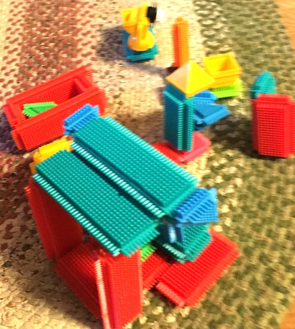 小学校にあがってもしばらくはそのブロックで車や農場(謎)や鳥などを作ったりして遊んでいましたが、ペタペタブロックは大きなパーツなので、説明してもらわないと何を作っているのかよく分からなかったり(^_^;)、少し込み入った構造になるとパーツが外れやすくなってしまったりして、